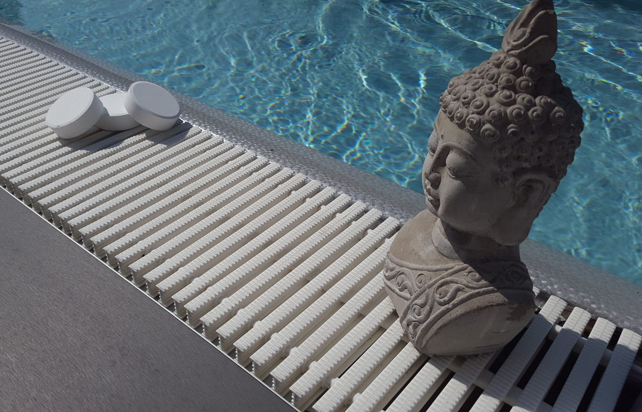Le piscine Solaris sono equipaggiate con l’esclusivo Skimmer-Up, sfioratore che permette di ottenere un livello dell’acqua eccezionalmente alto (il più alto del mercato).